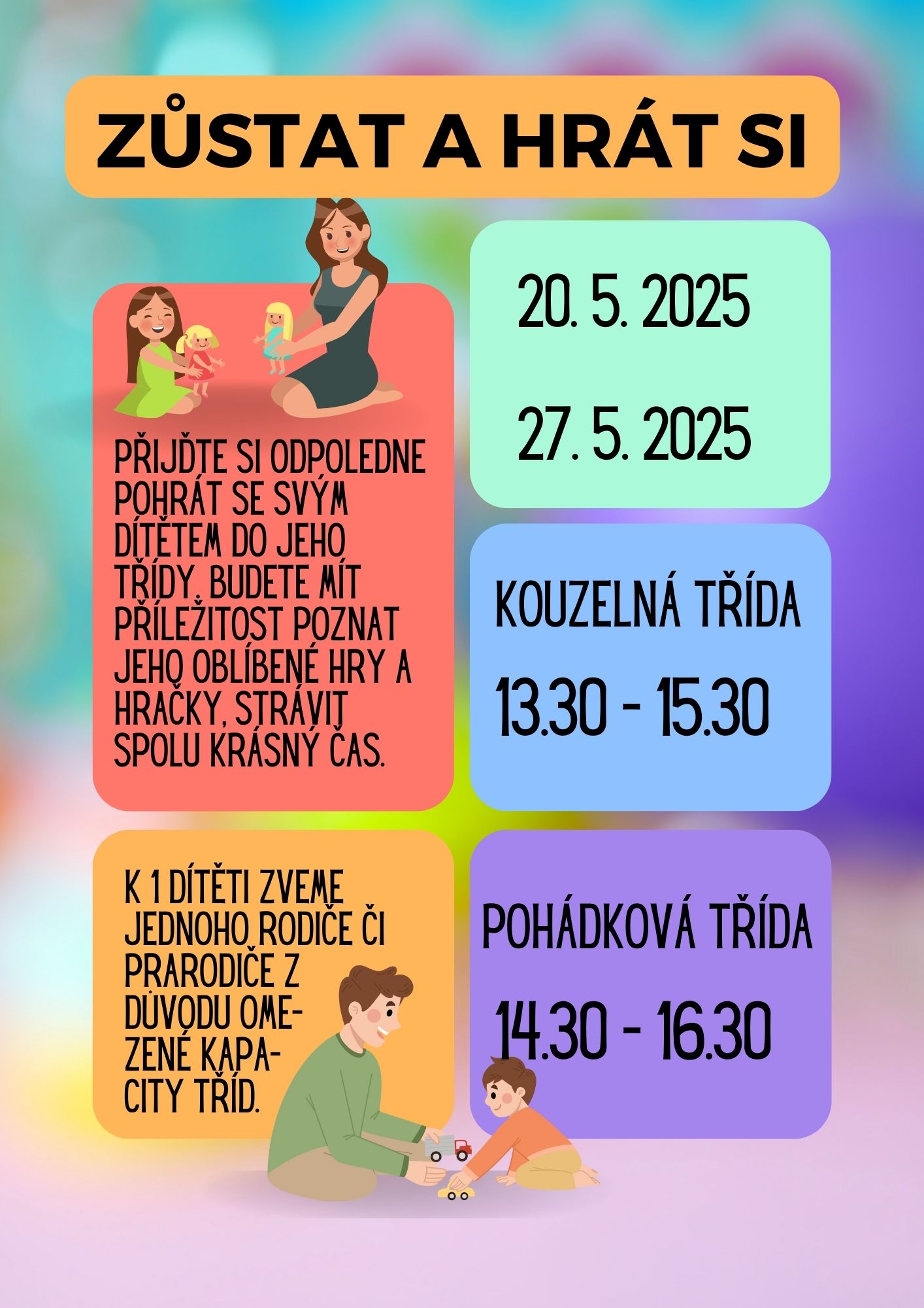 přijďte odpoledne za svým dítětem či vnoučátkem a užijte si společný čas hraním nebo tvořením dle vlastní chuti a fantazie.