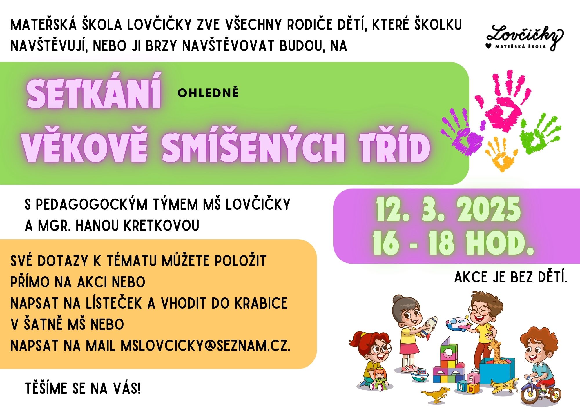 srdečně Vás zveme na očekávanou akci, kde si sdělíme své očekávání i plány související s věkově smíšenými třídami.